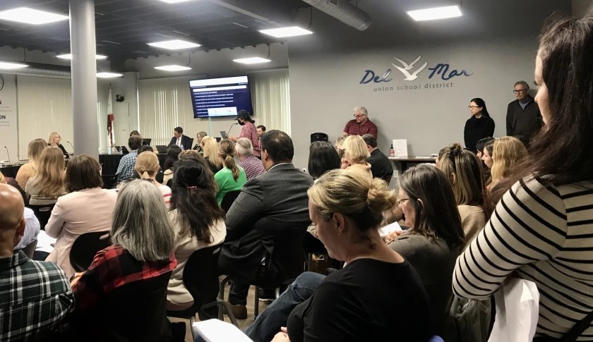 “Just as we’re seeing the light at the end of the tunnel, we’re dealt a blow of losing our principal,” said Franke, one of many Heights parents who filled the board room on March 16. “Why would the glue that held our displaced school community together choose to leave when he was just last month making plans on our return to Del Mar Heights post-rebuild? To have Jason removed at this point has left us feeling gutted.”