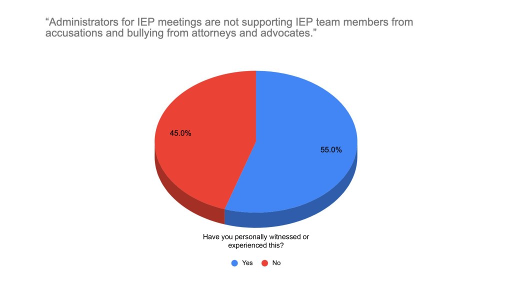 - Administrators for IEP meetings are not supporting IEP team members from accusations and bullying from attorneys and advocates. Instead of speaking up and ending the abusive talk and hostile meeting, or by setting team norms, IEP team members are attacked and scrutinized.