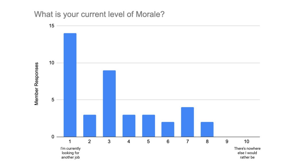 - Our morale as a staff cannot get much lower and something needs to change.