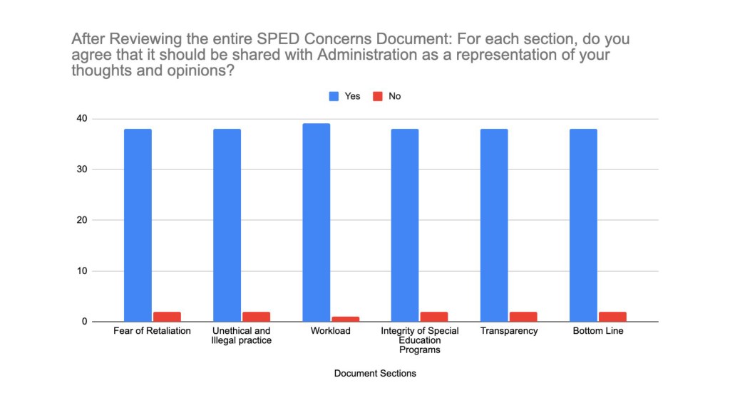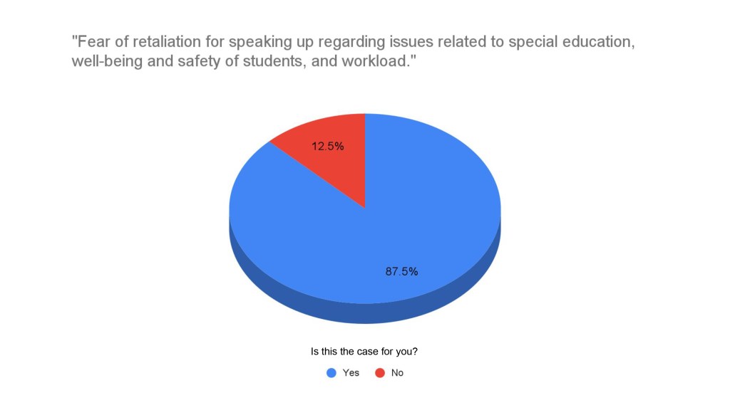 - Fear of retaliation for speaking up regarding issues relates to special education, well-being and safety of students, and workload.